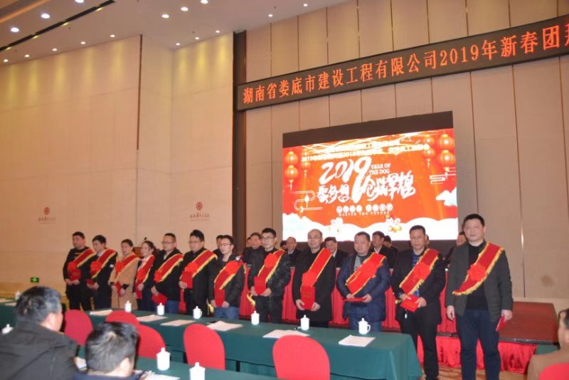 2019年2月17日,是2019年農(nóng)歷新年正月十三,,湖南省婁底市建設(shè)工程有限公司2019年新春團拜暨2018年先進單位、優(yōu)秀員工表彰會在婁底華天大酒店湖南廳隆重舉行。公司全體員工參加會議,到會領(lǐng)導(dǎo)和公司高管在主席臺就座。公司董事長兼總經(jīng)理、黨委書記唐端劍做了熱情洋溢的新年致辭和振奮人心的工作報告。會議完成了七項議程。會議由公司副總經(jīng)理曾思威同志主持。公司副總經(jīng)理李嶸同志宣讀《婁底市建設(shè)工程有限公司2018年先進單位、優(yōu)秀員工表彰決定》,公司對婁底濱江名都工程項目部,貴州甕安工程項目部2個先進單位和吳風(fēng)梅、戴維、曾樂國等12名先進工作者予以通報表彰。會議在雄壯的歌曲聲“我們都是追夢人”圓滿結(jié)束!
